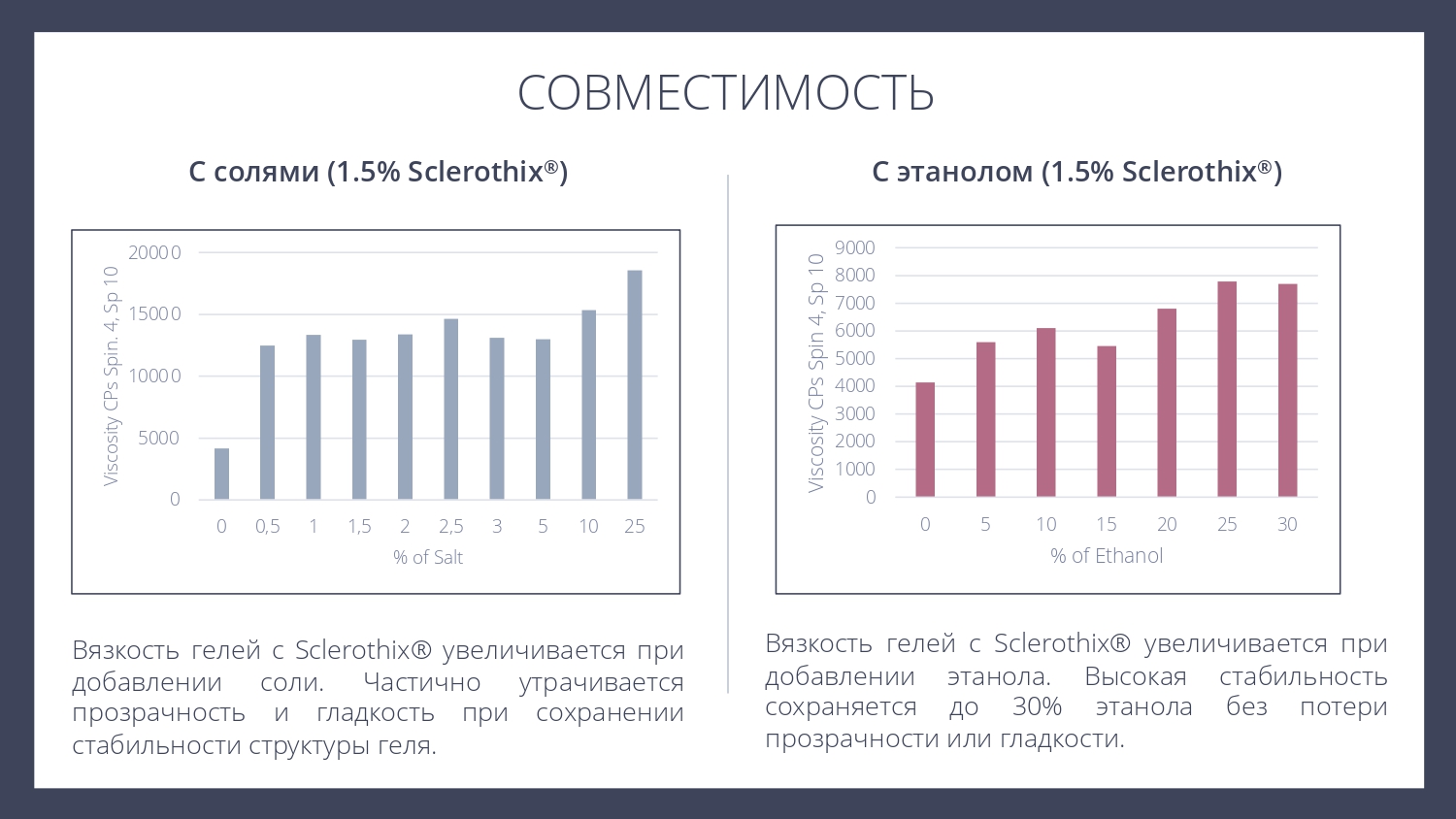 Sclerothix является эффективной добавкой для улучшения суспендирования (подвешивания) различных частиц - скрабов, глин или пигментов, в том числе в составе моющих систем.